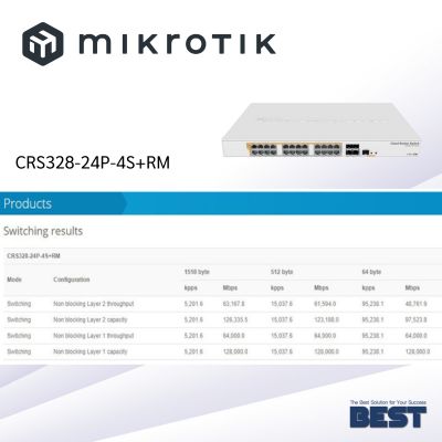 อุปกรณ์ Router Switch 24 พอร์ท 1000 Mbps แบบ RJ-45 + 4 พอร์ท SFP Plus 10G, รองรับการทำงาน L2/L3 + รองรับการจ่ายไฟฟ้า กำลังไฟรวม 450 W (3x150W) มาตรฐาน IEEE 802.3af/at (PoE+ สูงสุด 30W ต่อ พอร์ท) และ รองรับการจ่ายไฟฟ้า 26/53VDC Passive PoE เสียบได้ทุกพอร์