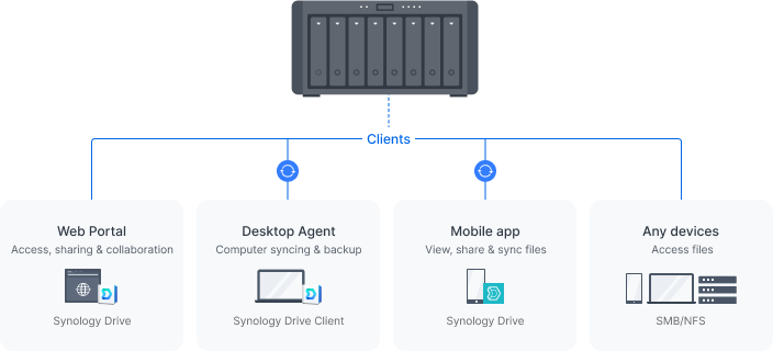 DS1823xs+ เป็นเซิร์ฟเวอร์ที่เก็บข้อมูลสำรองส่วนกลางที่ทรงพลัง สามารถนำไปใช้งานได้ทุกที่อย่างง่ายดายเพื่อให้พื้นที่จัดเก็บข้อมูลที่แชร์กันได้รวมทั้งการแชร์ไฟล์ การสำรองข้อมูล Endpoint และเซิร์ฟเวอร์ การจัดเก็บข้อมูล VM การจัดการ Surveillance และแอปพลิเคชันทางธุรกิจอื่นๆ เหมาะอย่างยิ่งสำหรับสภาพแวดล้อมที่ไม่มีชั้นวางเซิร์ฟเวอร์หรือศูนย์ข้อมูลเฉพาะ