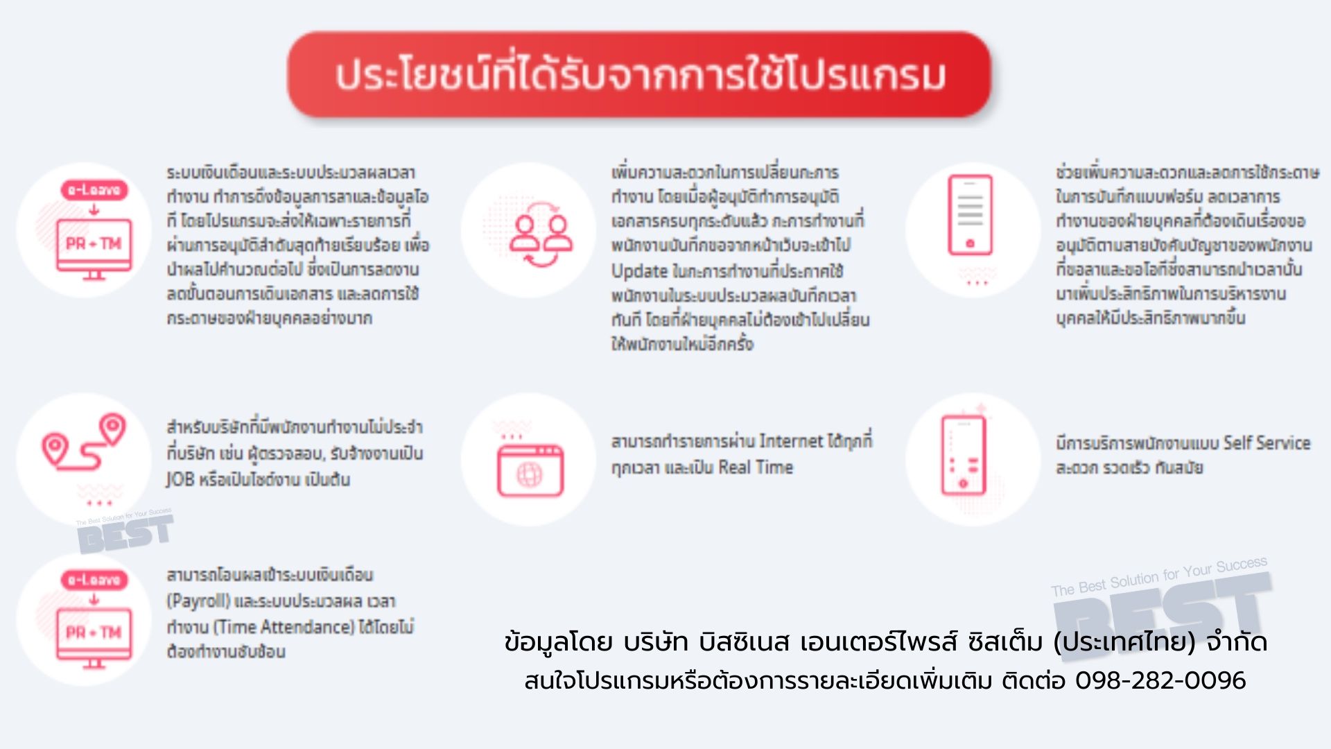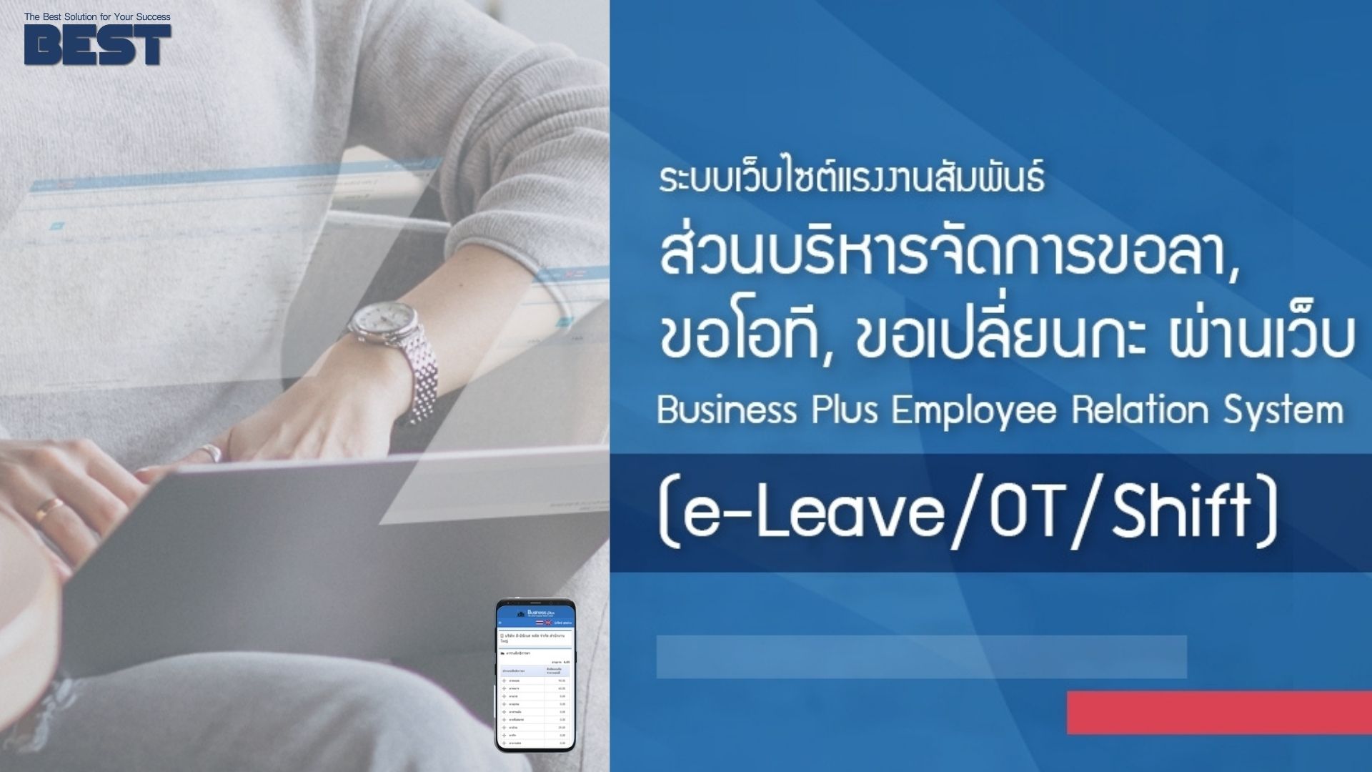 Bplus e-Leave ส่วนบริหารจัดการขอลา ระบบที่ช่วยให้พนักงานสามารถยื่นเรื่องขอลาออนไลน์, ขอหยุดงานต่างๆ และยื่นเรื่องขอทำโอทีออนไลน์ได้โดยไม่ต้องกรอกแบบฟอร์มต่างๆ ของบริษัท เพียงแค่บันทึกรายละเอียดการขอหยุดงานหรือขอทำโอที และขอเปลี่ยนกะผ่านเว็บ