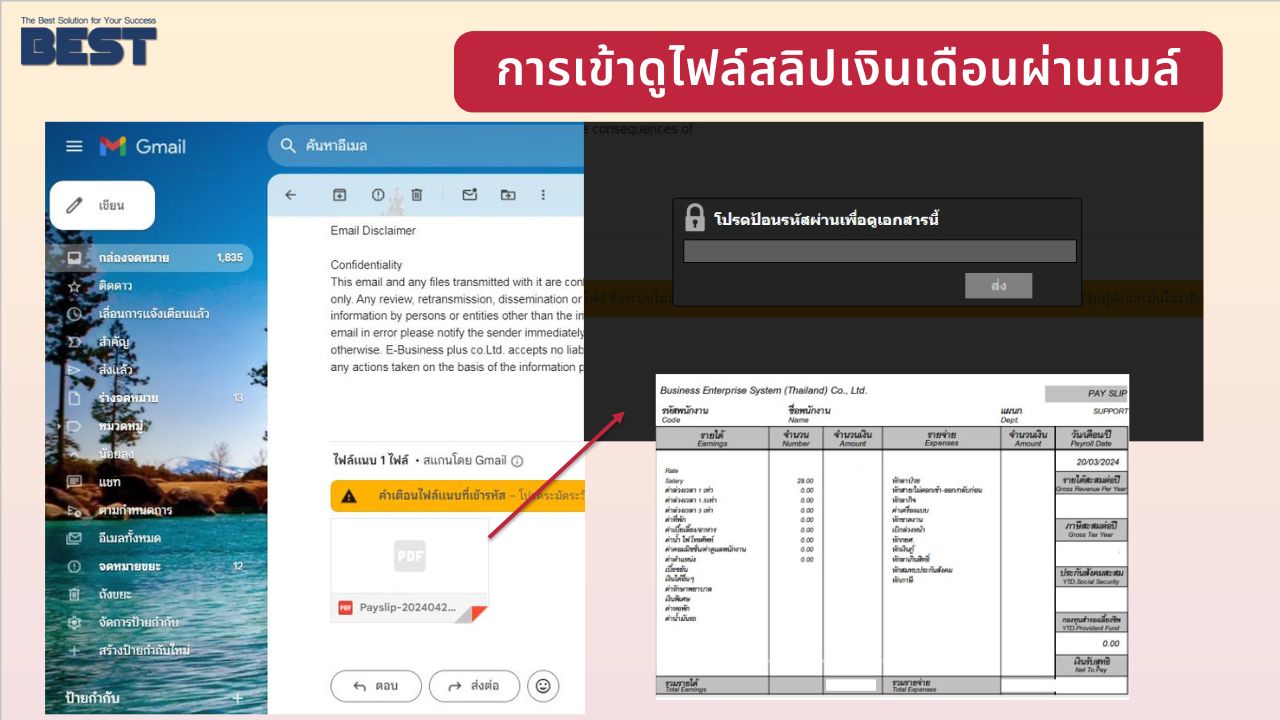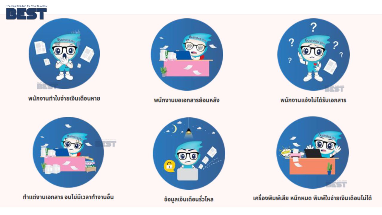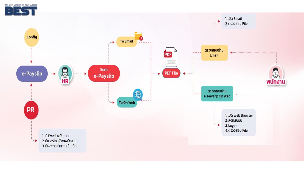 Bplus e-Payslip โปรแกรมพิมพ์ใบจ่ายเงินเดือนให้พนักงานรูปแบบ Electronic File และส่ง E-Mail ให้พนักงานได้ทันทีโดยพนักงานแต่ละคนจะมีรหัสลับเพื่อความปลอดภัย ในการเปิดเข้าดูข้อมูลเงินเดือน ซึ่งเป็นความลับเฉพาะคน และความลับขององค์กร รวมทั้งยังสามารถส่งเอกสารหรือรายงานอื่นๆ ให้พนักงานทาง E-Mail ได้ทำนองเดียวกับใบจ่ายเงินเดือน นอกจากนั้นพนักงานยังมีช่องทางพิเศษสะดวกในการรับข้อมูลได้อีกคือทาง SMS หรือ App Bplus HRM Connect