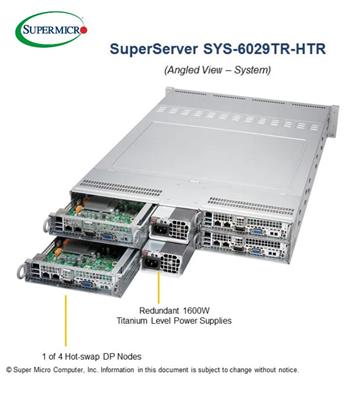 - 4x Intel® Xeon® Silver 4208 Processor 8 Cores 1.7Ghz- 4x 128GB (512GB) DDR4 2666MHz Memory Module- 4x 64GB SATA3 DOM for booting- 8x SSD 1.92TB 2.5"- 4x 4TB SATA 6Gb/s 7.2KRPM 3.5"- 8x 10G SFP+- 2x 2000W Redundant PowerSupplies
