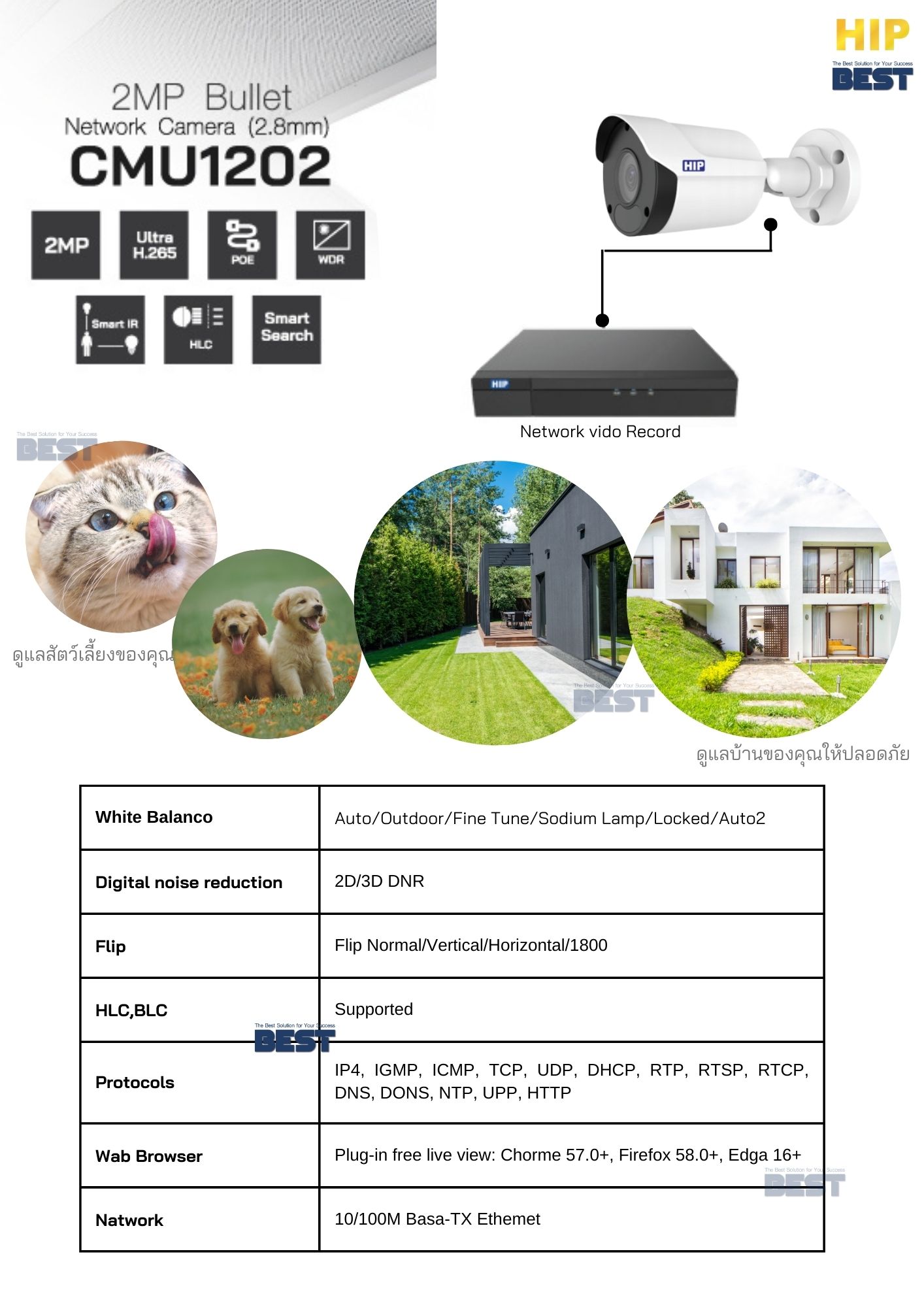 HIP กล้องวงจรปิด Bullet รุ่น CMU1202 เหมาะสำหรับการติดตั้งภายนอกด้วยคุณสมบัติกันน้ำและฝุ่นระดับ IP67 ทำให้ กล้องวงจรปิด Bullet รุ่น CMU1202 ทนทานต่อสภาพอากาศและพร้อมใช้งานได้ตลอดเวลา เพิ่มความปลอดภัยให้บ้านของคุณด้วยกล้องวงจรปิดรุ่นจาก HIP กล้องรุ่นนี้ถูกออกแบบมาให้ทนทานต่อสภาพอากาศภายนอกและให้ภาพคมชัดช่วยให้คุณมั่นใจได้ตลอด 24 ชั่วโมง